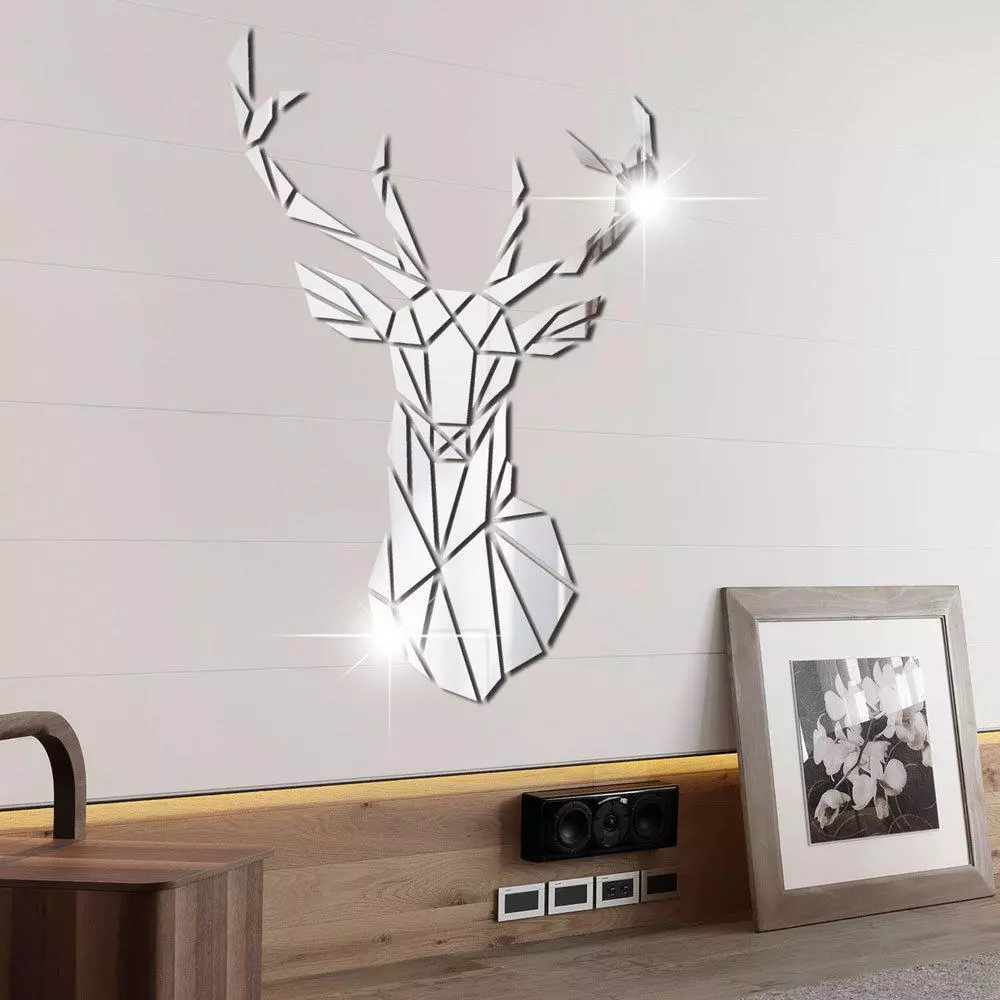 3D Deer Head Acrylic Mirror Wall Stickers/Geometric Clipping Elk Self-adhesive Stickers Removable Decal
