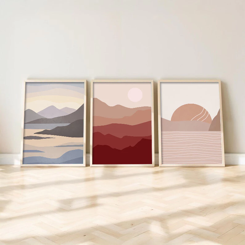 Be the first to review “Boho Frame Poster 3pcs Sunrise Nordic Canvas Abstract Lines Wall Art Sunset Picture Home Decor”