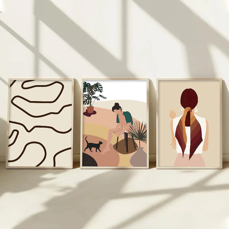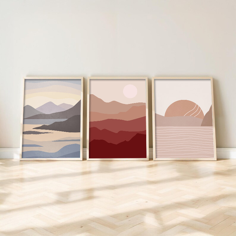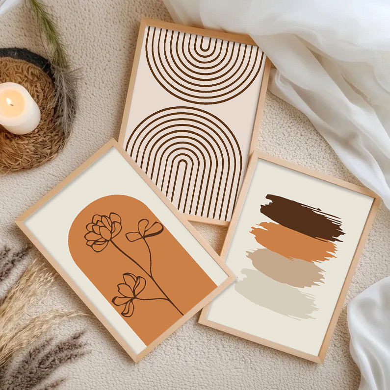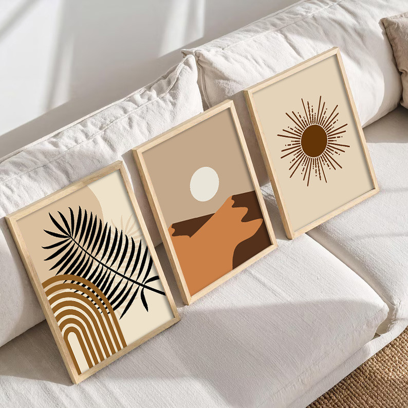 Boho Frame Poster 3pcs Sunrise Nordic Canvas Abstract Lines Wall Art Sunset Picture Home Decor